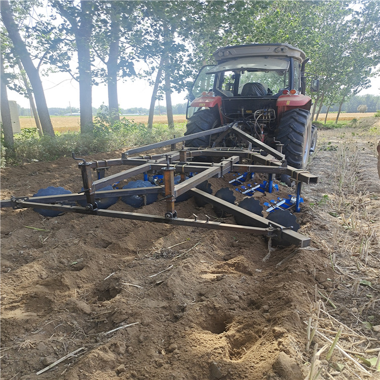 山東無墑犁生產(chǎn)廠家21年研發(fā)的新款無墑犁寬度可調(diào),新型提供一種無墑溝懸掛犁,包括深耕犁和旋耕機(jī),旋耕機(jī)設(shè)置在深耕犁尾部,深耕犁包括雙橫梁犁架,雙面犁鏵,連接件,單面犁鏵,限深輪,雙橫梁犁架上橫向設(shè)置有橫梁,雙橫梁犁架左右兩側(cè)設(shè)置有限深輪,雙橫梁犁架前端設(shè)置有雙面犁鏵,橫梁上固定有連接件,后面有新型平傷器。平墑器可以把深翻過的傷溝鏟平如圖所示: