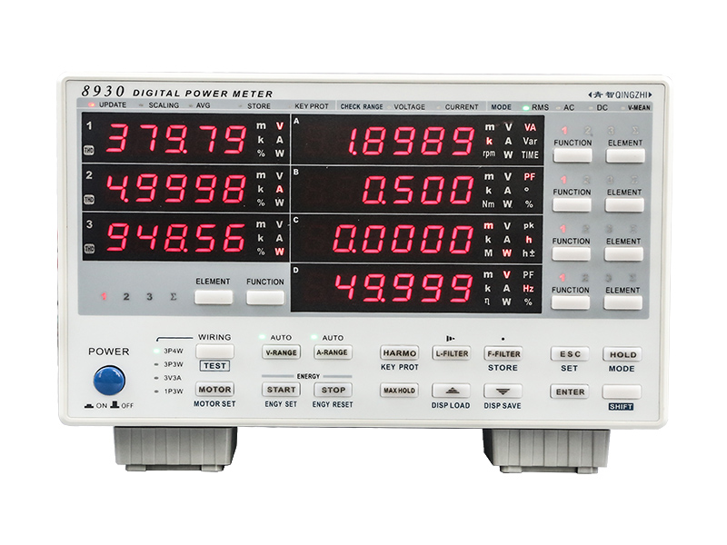 選用電機(jī)擴(kuò)展功能配件(選配),在觀測(cè)電壓、電流和功率變化的同時(shí),也可以觀測(cè)轉(zhuǎn)速和扭矩的變化計(jì)算并顯示機(jī)械功率和總效率。